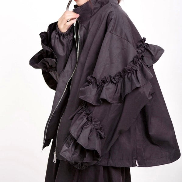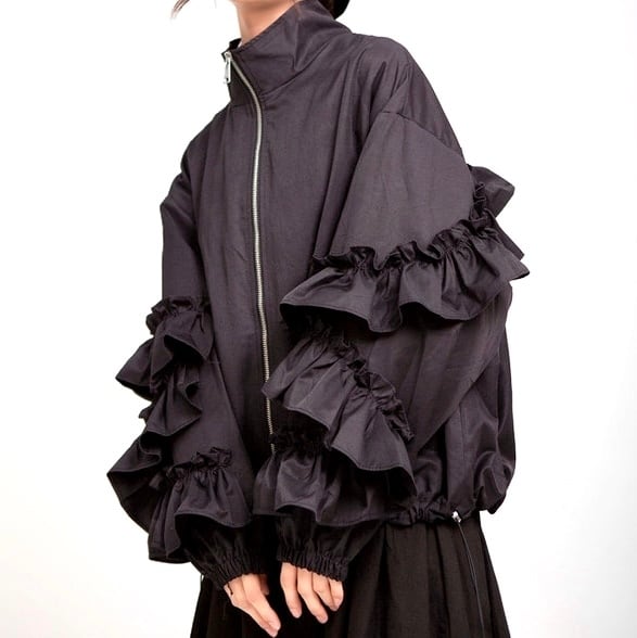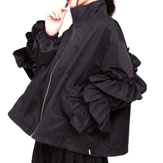 大ぶりルーズフィット フリルジャケット 長袖コート