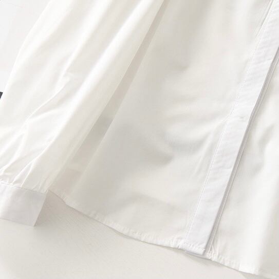 正統派シャツはちょっぴり甘いテイストに。