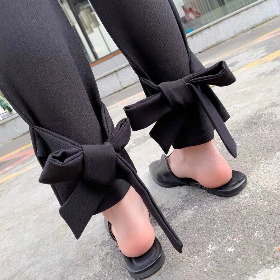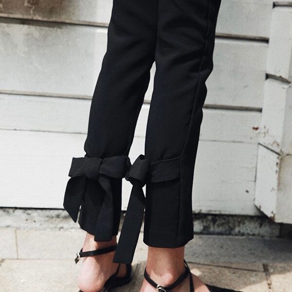 ブラックハイウエスト リボン(Bow)デザインパンツ